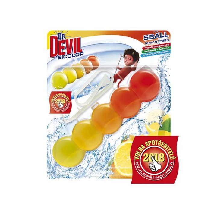 Dr.DEVIL BiCOLOR WC závesný blok tuhý 5Ball 1x35g Lemon fresh