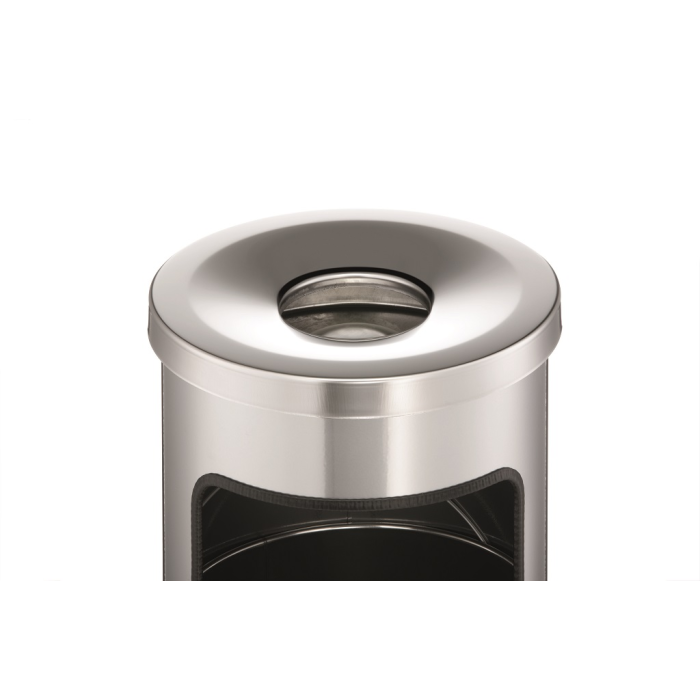 Smetný kôš na papier a popolník v jednom. Objem koša 17 l, výška 630 mm, priemer 250 mm. Objem popolníka 2 l, výška 60 mm, priemer 240 mm. Farba: strieborná