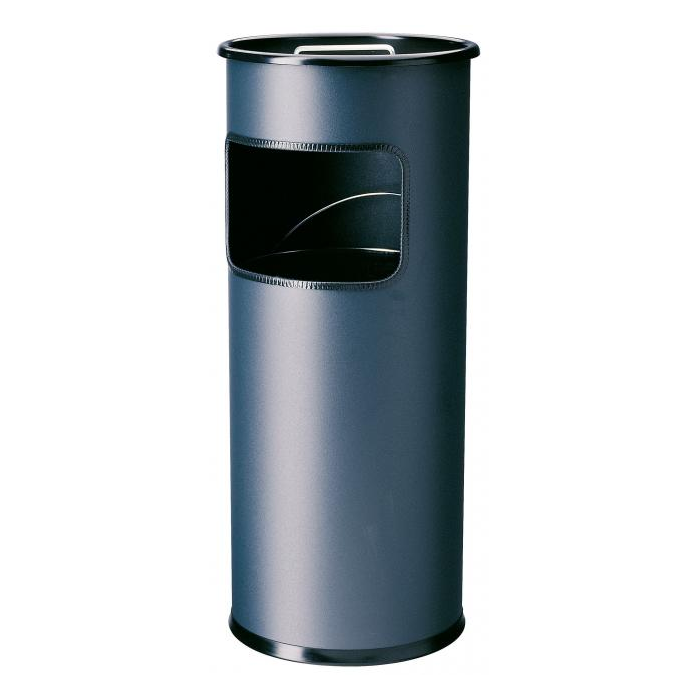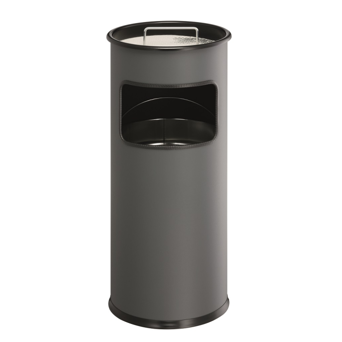Kovový kôš na odpadky s vyberateľným zinkovým vnútrom a vyberateľným popolníkom naplneným pieskom /1,5 kg/ . Vhodný na použitie v interiéry aj v exteriéry. Objem koša 17 l, výška 620 mm, priemer 260 mm. Objem popolníka 2 l. Farba antracitová.