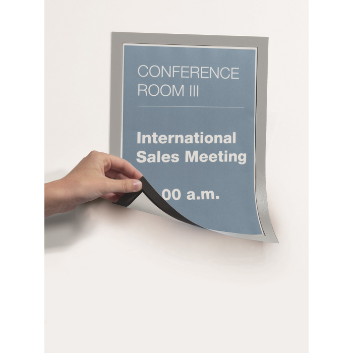 Informačný panel s magnetickou časťou na zadnej strane rámika na jednoduché a rýchle vkladanie informácie formátu A4. Vhodný na hladké magnetické povrchy, napr. magnetickú tabuľu. Farba strieborná. V balení 5 ks.