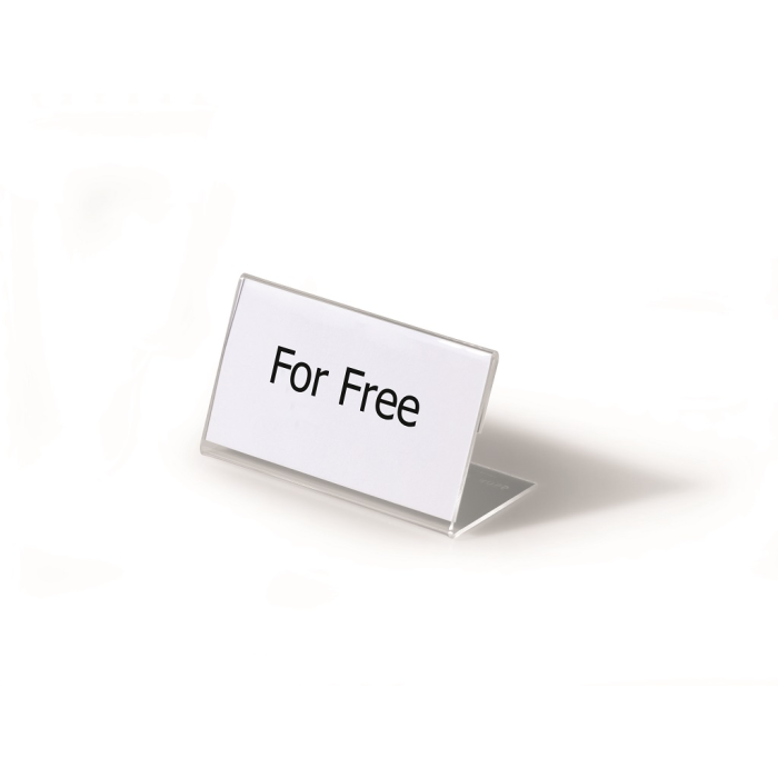 Stabilná stolová menovka „L“ profilu vyrobená z akrylu. Vhodná na konferencie, recepčné pulty, ceny tovarov a popis produktov. Väčšie balenie 10 ks.