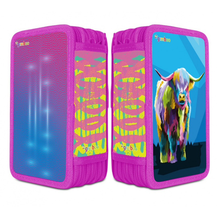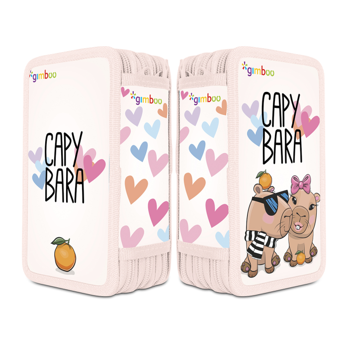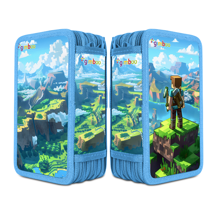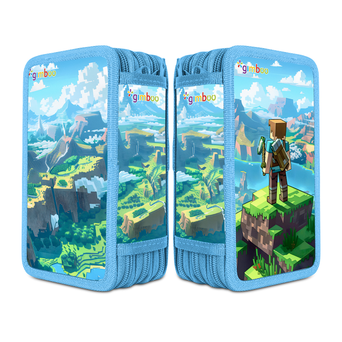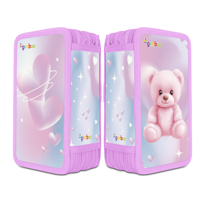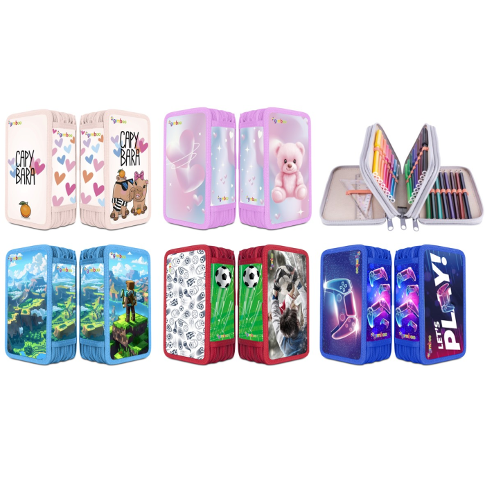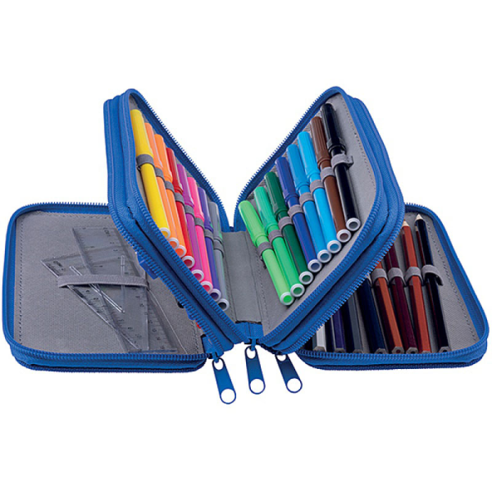 Školský peračník s výbavou v 3 priehradkách. Sada obsahuje: pravítka, 3 perá, ceruzka, guma, strúhadlo, 16 fixiek, 16 pasteliek. Mix motívov.