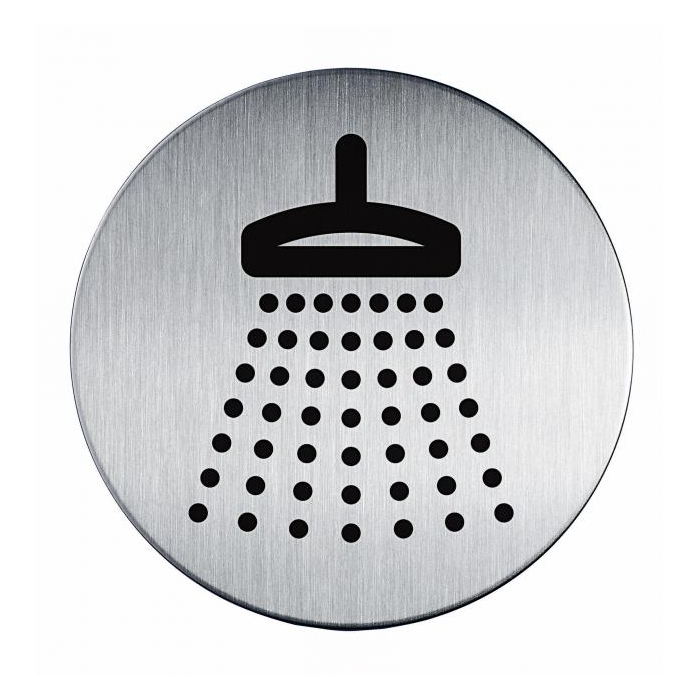 Piktogram na vysoko kvalitnej brúsenej nehrdzavejúcej oceli. Vytlačený symbol je odolný voči poškriabaniu a silnému opotrebeniu. Priemer 83 mm, vďaka lepiacej páske na zadnej strane sa piktogram dá použiť na rôzne povrchy. Farba strieborná, potlač čierna.