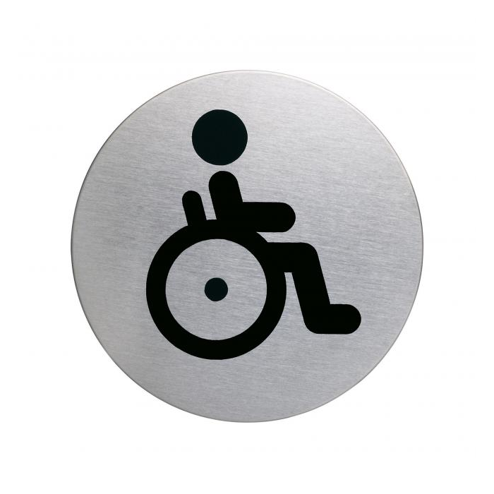 Piktogram na vysoko kvalitnej brúsenej nehrdzavejúcej oceli. Vytlačený symbol je odolný voči poškriabaniu a silnému opotrebeniu. Priemer 83 mm, vďaka lepiacej páske na zadnej strane sa piktogram dá použiť na rôzne povrchy. Farba strieborná, potlač čierna. Priemer : 83 mm Popis: lepiaca páska na zadnej str.