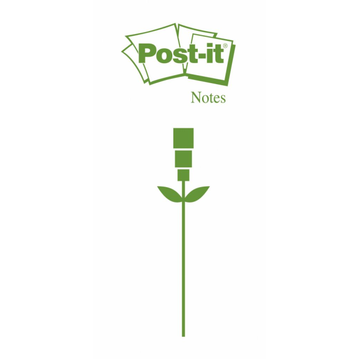 - Post-it® recyklované bločky sú vyrobené zo 100 % recyklovaného papiera a lepidla z obnoviteľných zdrojov.