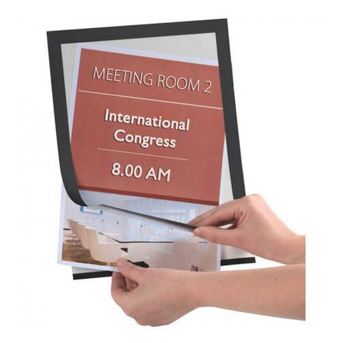 Informačné samolepiace vrecko na prospekty s rámom. Výklopná magnetická predná strana pre rýchlu a ľahkú výmenu dokumentov formátu A4. Samolepiaci podklad priľne na všetky hladké povrchy, ľahko ho odstránite a opätovne prilepíte. Materiál plast. Formát A4. Balenie 2 kusy. Farba čierna.