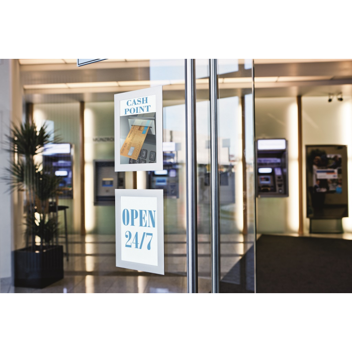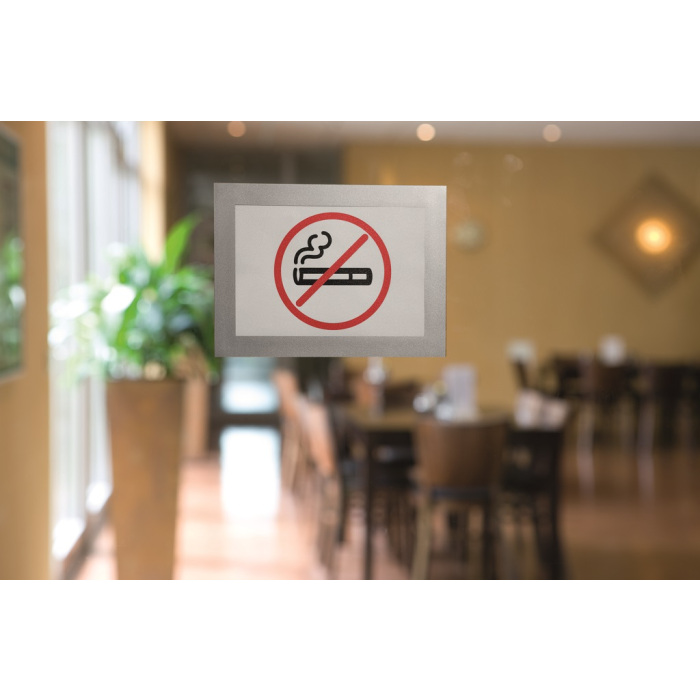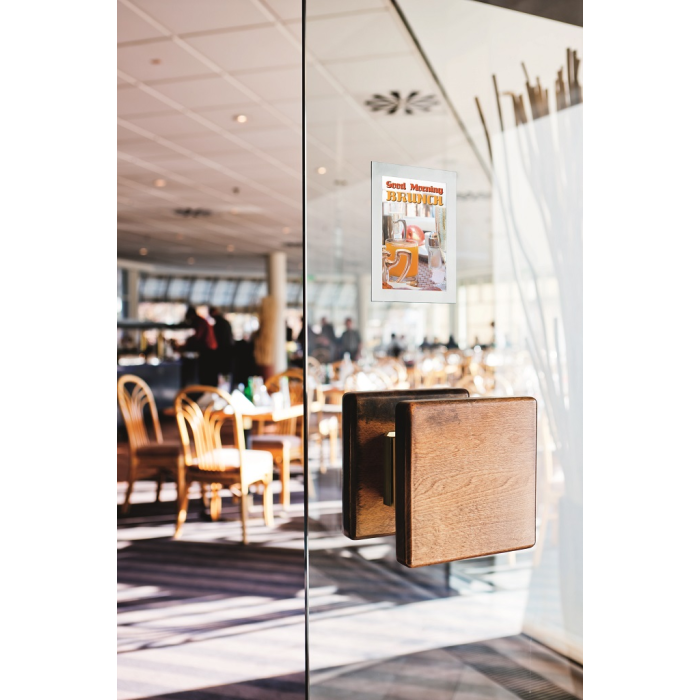 Samolepiaci informačný panel s prednou magnetickou časťou. Ideálny na vystavovanie kľúčových informácií, špeciálnych oznamov alebo dôležitých čísel. Informácie sa ľahko vymieňajú a sú čitateľné z oboch strán, ak sa panel umiestni napr. na okno alebo priehľadné dvere. Vhodný na hladké a pevné povrchy. V prípade potreby je ľahko premiestniteľný bez potreby vŕtania. Formát A6, farba rámu strieborná. V balení 2 ks.