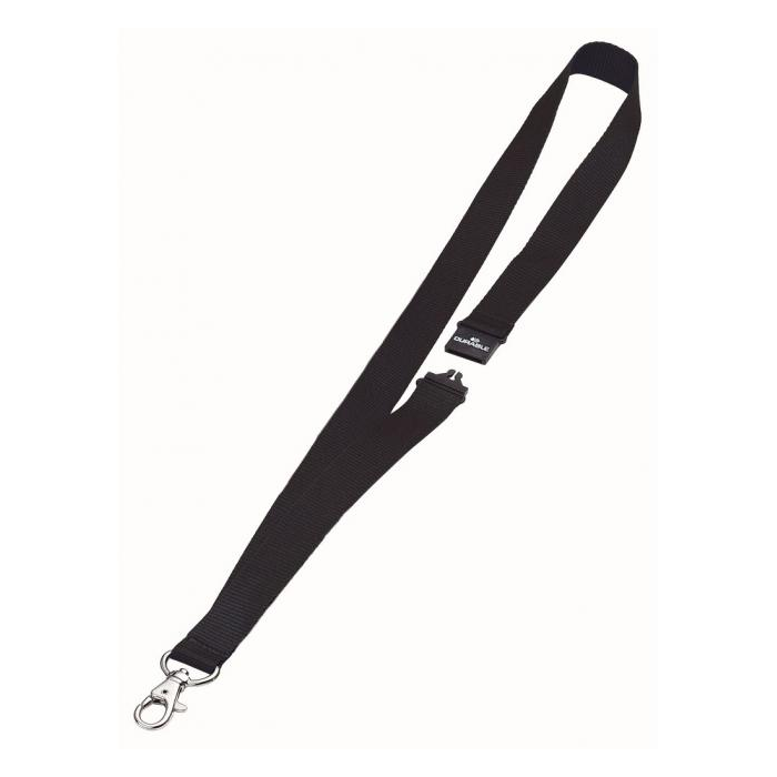 Remienok s bezpečnostnou poistkou a kovovou skobou. Poistka sa uvoľní pri zachytení remienka alebo silnom potiahnutí. Vhodný ku všetkým visačkám značky Durable. Dĺžka 44 cm, šírka 20 mm. Balenie 10 ks.